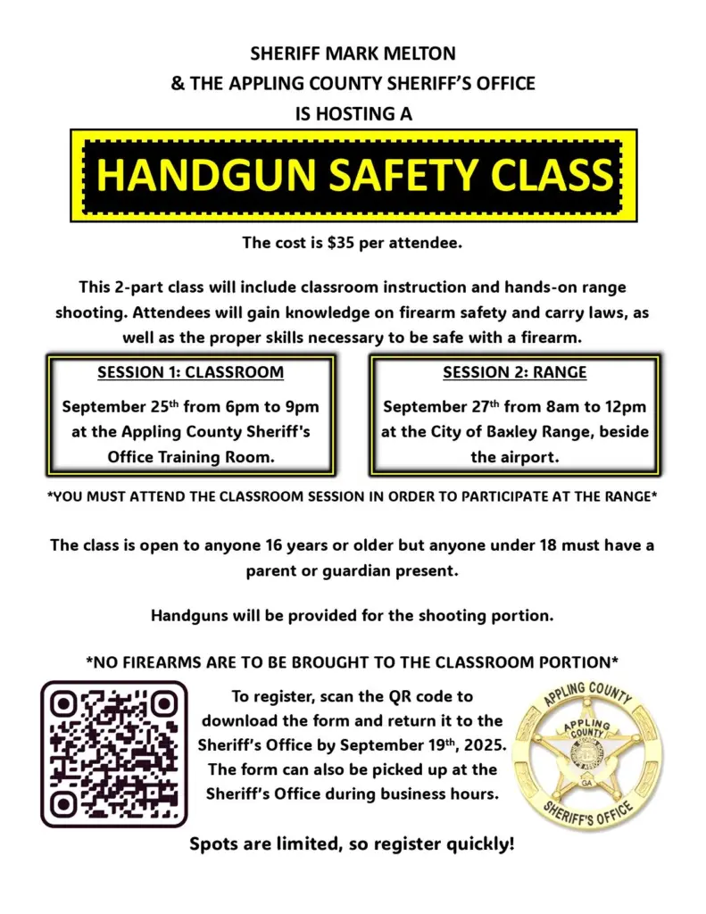 Appling County Sheriff’s Office Handgun Safety Class